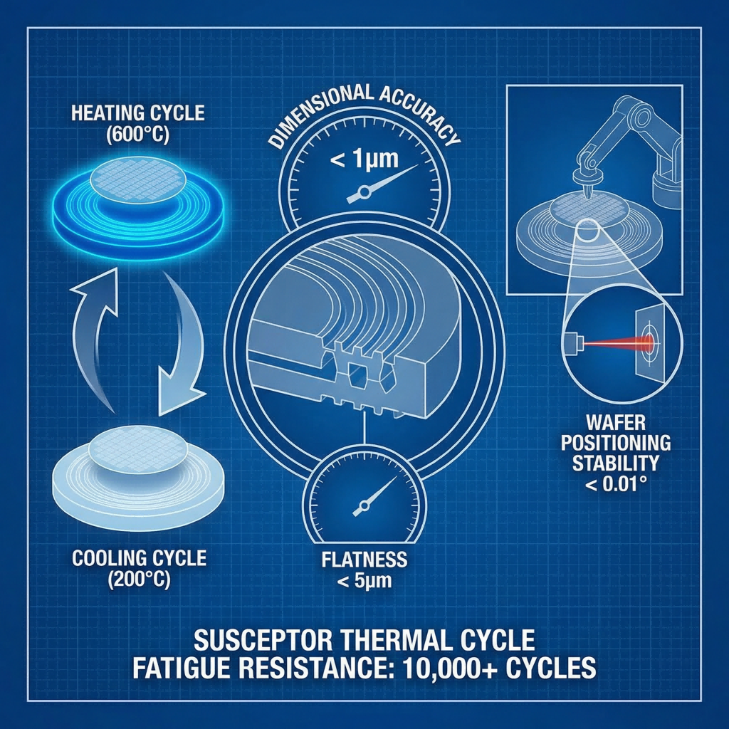Чудоприймачі преміум-класу повинні мати чудову стійкість до втоми від термічного циклу. Під час тривалих циклів нагрівання та охолодження датчик має підтримувати точність розмірів і площинність, щоб запобігти відхиленням позиціонування пластини, спричиненим механічною деформацією, таким чином гарантуючи, що вихід кожної партії залишається на очікуваному базовому рівні. Точність преміум-класу повинна мати чудову стійкість до втоми від термічного циклу. Під час тривалих циклів нагрівання та охолодження токоприймач повинен підтримувати точність розмірів і площинність, щоб запобігти відхиленням позиціонування пластини, спричиненим механічною деформацією, таким чином гарантуючи, що вихід кожної партії залишається на очікуваному базовому рівні.